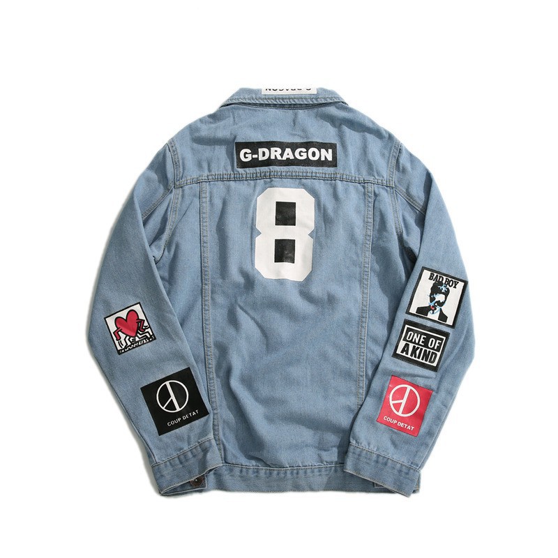 Jaket Jeans Longgar Casual Fashion Pria Motif Print Belakang G Dragon Angka Delapan Bahan Denim Shopee Indonesia