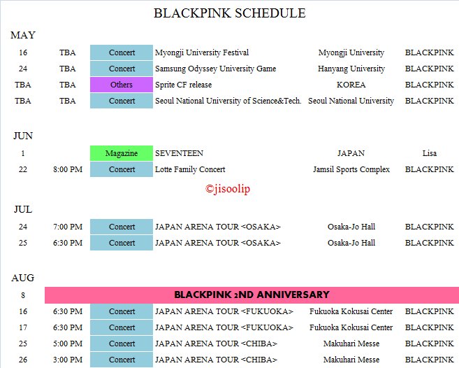 Bpb On Twitter Blackpink S Schedule For June July And August 2018 Schedule Is Subject To Change Credits Jisoolip Dafbama2018blackpink Ygofficialblink Https T Co 7vpp5wac45