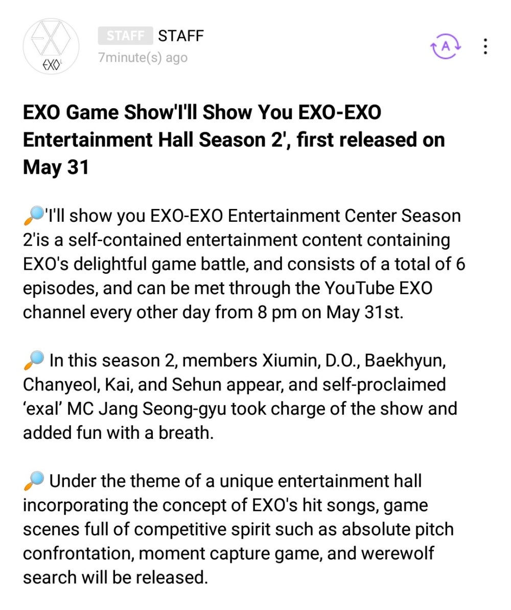 Exo Source Id S Tweet 210525 Lysn Update With Exo Exo Akan Merilis Program Game Show Berjudul I Ll Show You Exo Exo Arcade Season 2 Tayang Mulai 31 Mei Pukul 18 00