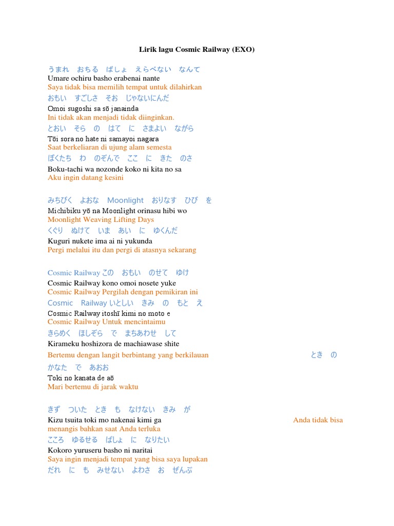Lirik Lagu Cosmic Railway Exo Ragam Bola Com
