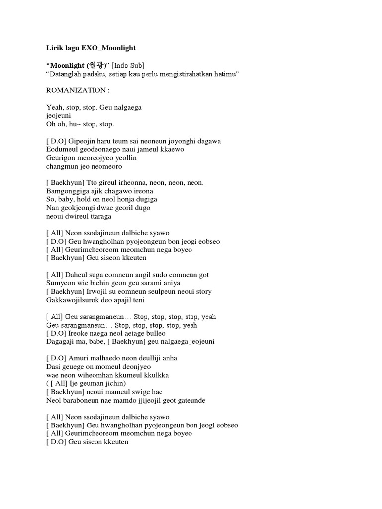 Lirik Lagu Exo Dan Terjemahannya Exo Moonlight Wattpad
