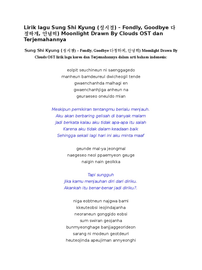 Lirik Lagu Gummy Moonlight Drawn By Clouds Ost Love In The Moonlight Terjemahan Indo Annyeong Hasimnikka