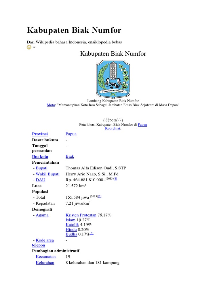 Kabupaten Biak Numfor Wikipedia Bahasa Indonesia Ensiklopedia Bebas