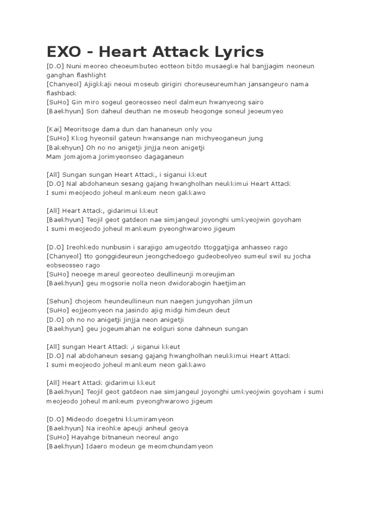 Korean Myuzicstylez Exo Heart Attack Easy Lyrics